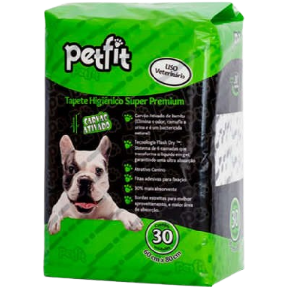 O melhor Tapete Higiênico para cães com o melhor custo benefício. O Carvão ativado de Bambu elimina o odor, é um bactericida natural, camufla a coloração da urina. Tamanho 60x80cm com bordas estreitas que aumentam a área de absorção. Tecnologia Flash Dry de Alta Absorção (17 segundos) que transforma o líquido em gel rapidamente e promove uma ultra absorção da urina impedindo que as patas fiquem úmidas e deixem pegadas pela casa. Gel japonês Sumitomo, o mesmo gel usado para absorção de óleo derramado no mar. Absorção 30% superior. Camada Anti Vazamento possui atrativo canino, resistente a rasgos e não deixa as patas úmidas. Camada Impermeável, bloqueia fugas nos cantos e evita vazamentos protegendo o piso. Fitas adesivas para fixação facilitando o posicionamento tanto para fêmeas como para machos. Tamanho 60cm x 80cm com 30 unidades em cada pacote.